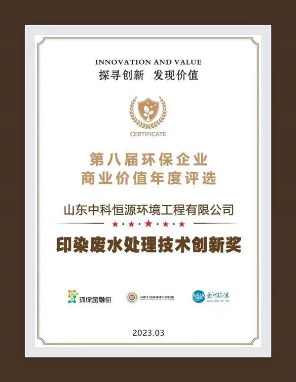 乐玩线上平台(集团)官方网站获得由环保金融街、中国工业水处理产业联盟、亚洲环保媒体平台联合颁发的“印染废水处理技术创新奖”